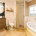 تتمتع الشرفة هنا بإطلالات على الحديقة. تشتمل مرافق الحمام أيضًا على المرحاض المنفصل وحوض الاستحمام الساخن والدوش. كما يمكن للضيوف الاستمتاع بالمجفف.